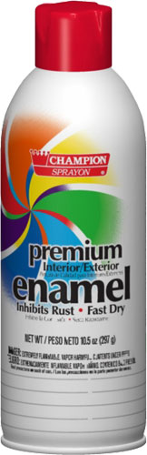 Champion Sprayon® quick-drying, multi-purpose enamels for interior and exterior use provide superior coverage, durability, and a rust-resistant finish. Resist chipping and peeling.