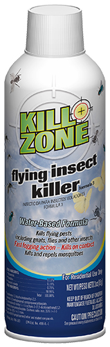 Chase’s Home Value™ Kill Zone® Flying Insect Killer can be used indoors or outdoors to eliminate annoying flying insects. It is effective against flying insects such as flies, mosquitoes, gnats and moths. It is also effective against crawling insects such as ants, centipedes, earwigs, clover mites, cockroaches, sow bugs and spiders. Outdoors, for best results, spray directly on crawling insects.