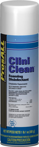 ProsALL® CliniClean™ is a germicidal that kills Staphylococcus aureus, Salmonella Enterica, Pseudomonas aeruginosa, Escherichia coli, Campylobacter jejuni and Salmonella schottmuelleri as well as Trichophyton interdigitale (athlete’s foot) fungi. Also kills Influenza A Virus H2N2, strain A/Japan/305/57, ATCC VR-100, Influenza B Virus (Hong Kong), ATCC VR-823, Herpes Simplex Virus Type 1 and Type 2, Respiratory Syncytial Virus and HIV-1 (AIDS) virus on hard, nonporous inanimate surfaces. Removes mold and mildew stains and odors.