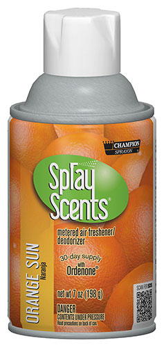 Champion Sprayon® SprayScents® completely eliminate unpleasant odors and leave a clean, fresh scent in the air. Contains Ordenone™, a deodorizing ingredient that is an effective odor eliminator. The measured spray deodorizes up to 6,000 cubic feet. Universal spray tip - our metered air fresheners are manufactured with a universal actuator tip and will fit most metered-aerosol dispensers.